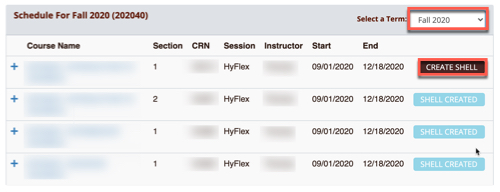 - Click the Create Shell button for the required course. The Shell Created label indicates that the course shell is created.